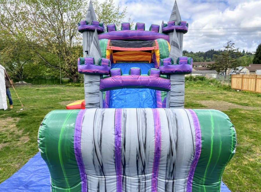 Looking for the ultimate centerpiece for your next party or event? The Fortress Castle Large Combo is here to turn your celebration into an unforgettable experience! Featuring bold colors—grey, purple, red, green, and yellow with eye-catching marbling—this inflatable bounce house and slide combo is designed to captivate kids and adults alike. Whether you’re planning a birthday party, community gathering, or school event, this versatile combo will be the highlight of your special day. π°π
