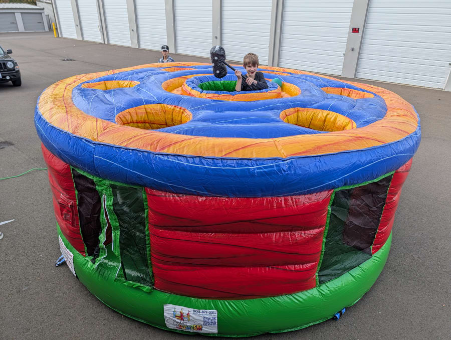 Safety is built in. The Human Whack-A-Mole Game uses soft foam mallets and padded ring walls. Staff supervision is recommended for younger players. The unit inflates quickly and anchors securely to prevent movement. We provide setup, teardown, and a safety briefing. Suitable for indoor surfaces and flat outdoor lawns. 🛡️