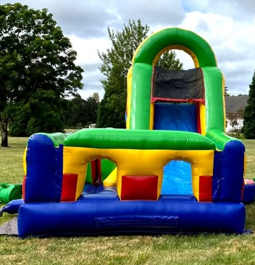 Looking to create an unforgettable event for your next party, school function, or community gathering? The Colorblock Single U-Turn Obstacle Course is the ultimate inflatable attraction that guarantees hours of laughter, excitement, and friendly competition, while fitting nicely into most backyards! With vibrant colorblocking and an engaging design, this brightly colored inflatable obstacle course adds an instant wow factor to any celebration, and hours of entertainment for adults or kids-the challenges and the slide will keep everyone entertained!