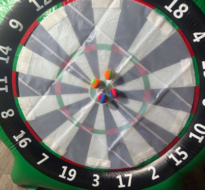 - Inflatable Dartboard can be used with Kickballs, soft handballs, or golf sized balls!