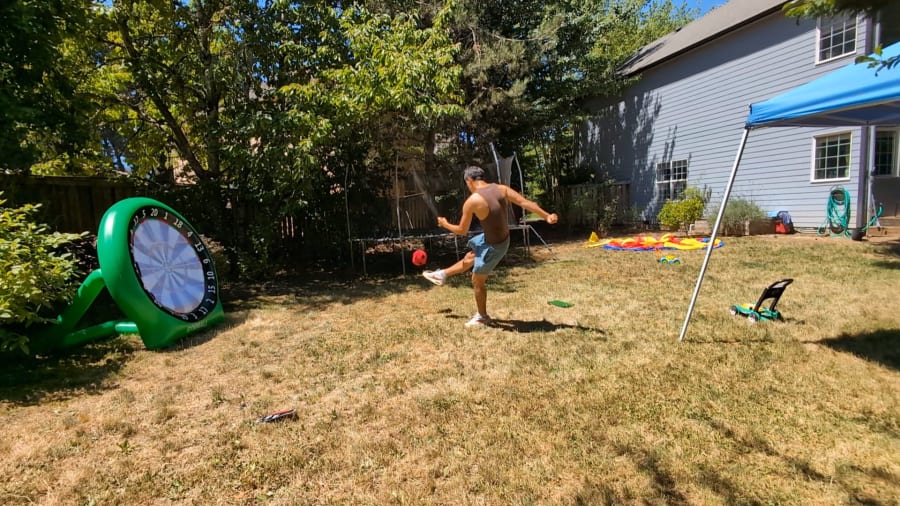 Simply aim your chosen ball at the giant dartboard, and throw or kick, and see how many points you score! The sticky surface ensures your shots stick, making scoring easy and fun. Challenge your friends in head-to-head matches or form teams for group competitions – the possibilities are endless! 🎯