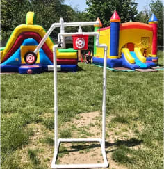 Looking for some fun competition at your next event? The Soak N' Wet "Dunk Tank" offers all the laughter and excitement of a traditional dunk tank—without the safety concerns! Tired of worrying about hygiene and safety with old-style dunk tanks? The Soak N' Wet "Dunk Tank" transforms every splash into a moment of pure joy. Instead of dunking in a shared tank, each participant gets a fresh blast of clean water straight from the hose. No more soaking multiple people in the same gross water all day, and absolutely no hard balls that can injure, or bulky tanks that pose a drowning risk. Safety and fun, rolled into one brilliant design!